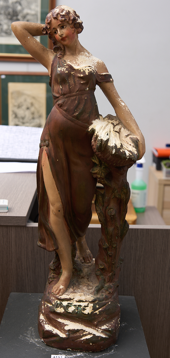 A 20TH C FRENCH PAINTED PLASTER FIGURE TITLED 'CETE' H.65CM, LEONARD JOEL LOCAL DELIVERY SIZE: MEDIUM