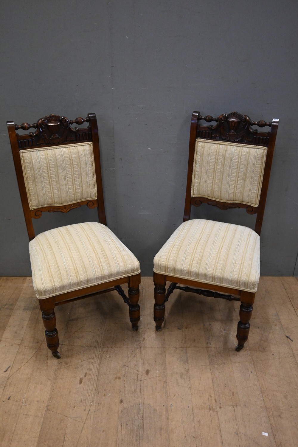A PAIR OF EDWARDIAN DINING CHAIRS (A/F) (108H x 51W x 54D CM) (LEONARD JOEL DELIVERY SIZE: LARGE)