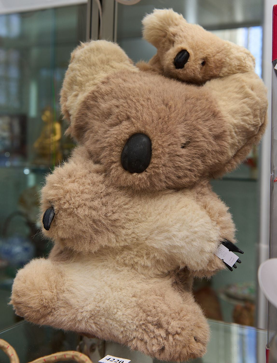 A VINTAGE KANGAROO HIDE KOALA BEAR AND BABY H,37CM, LEONARD JOEL LOCAL DELIVERY SIZE: SMALL