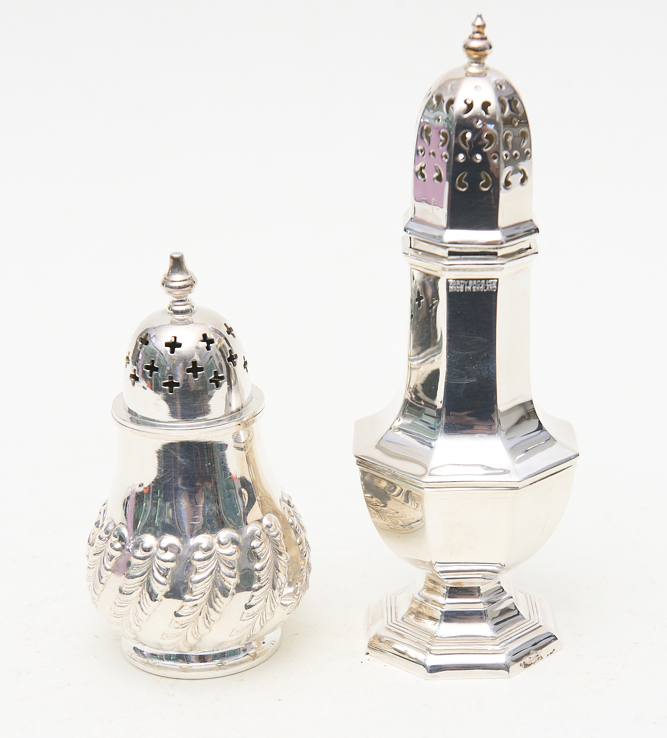 TWO SILVERPLATED CASTOR SHAKERS H.19.5CM, LEONARD JOEL LOCAL DELIVERY SIZE: SMALL