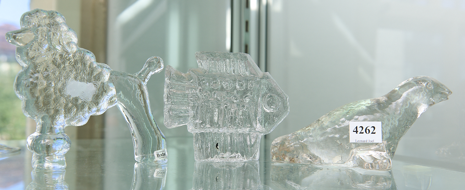 A COLLECTION OF THREE BODA AND PUKEBERG SWEDISH GLASS ANIMALS, LEONARD JOEL LOCAL DELIVERY SIZE: SMALL