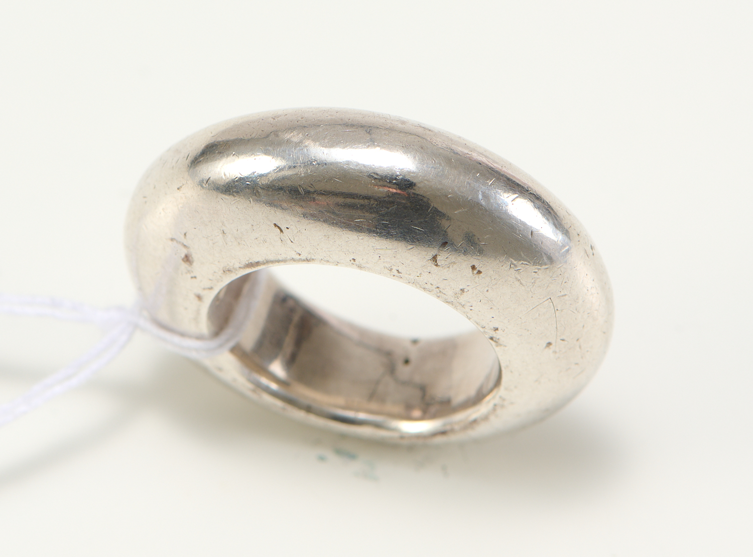 A MODERNIST RING IN STERLING SILVER, CONTINENTAL HALLMARKS, RING SIZE N/O, WEIGHT 31.8 GRAMS