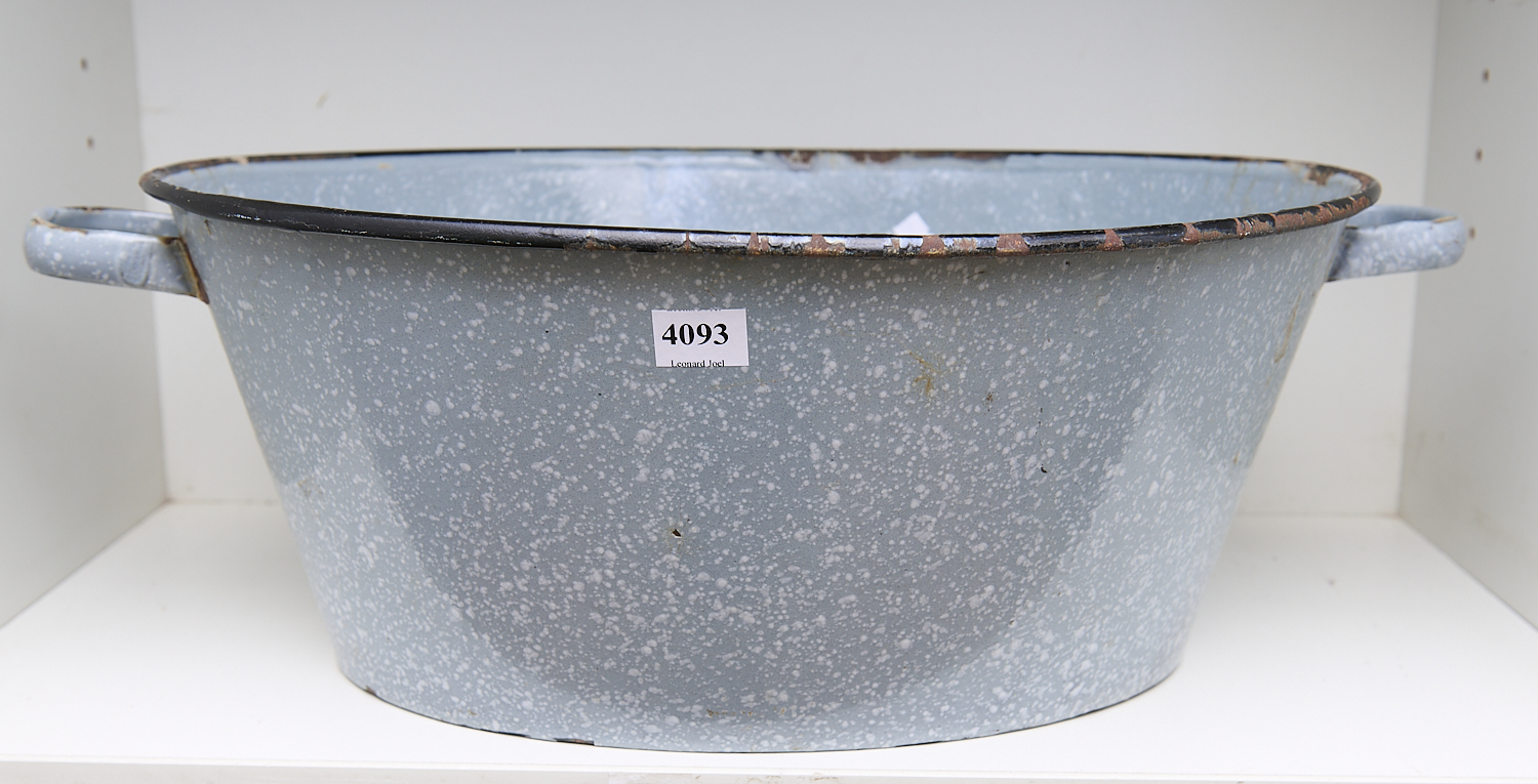 AN ENAMEL TWO HANDLED BASIN W.41CM, LEONARD JOEL LOCAL DELIVERY SIZE: MEDIUM