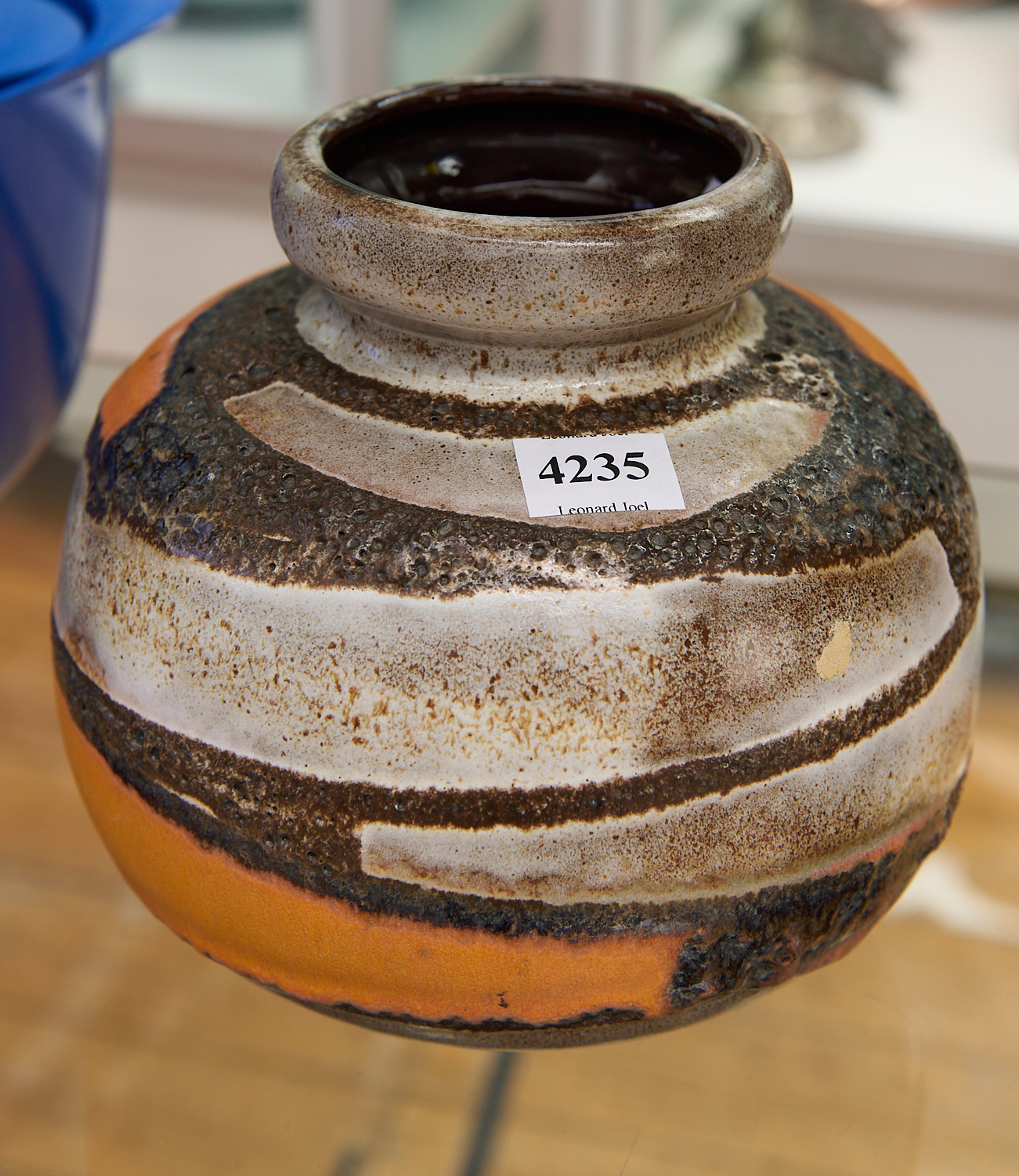 A 1960S WEST GERMAN POTTERY VASE H.16.5CM, LEONARD JOEL LOCAL DELIVERY SIZE: SMALL