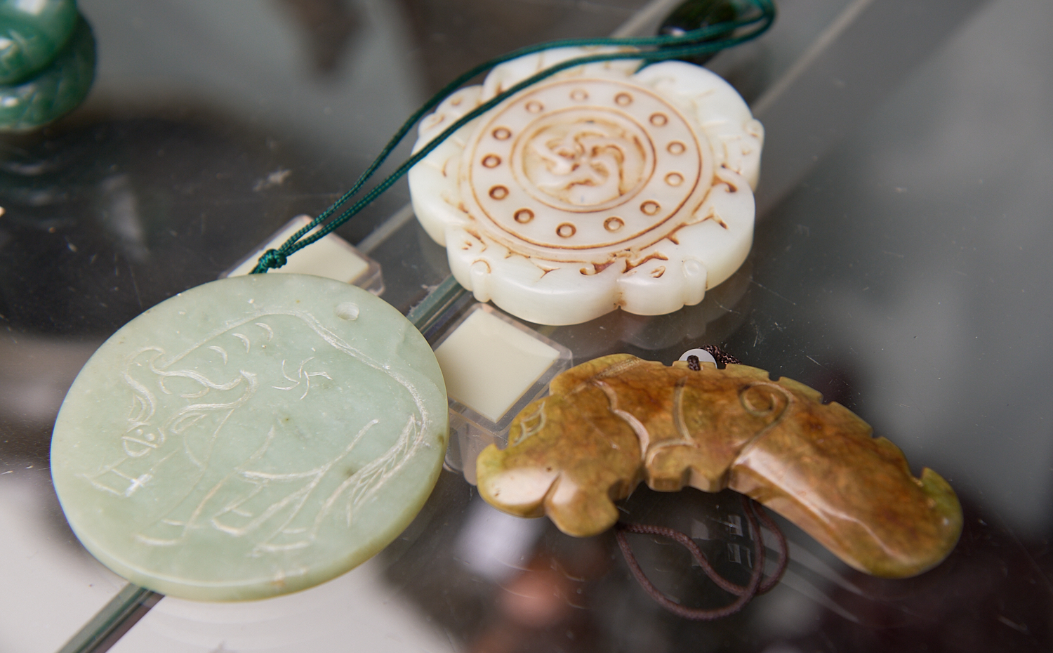 THREE CHINESE HARDSTONE JADE / JADEITE CARVED TOGGLES DIA.5.5CM (LARGEST), LEONARD JOEL LOCAL DELIVERY SIZE: SMALL