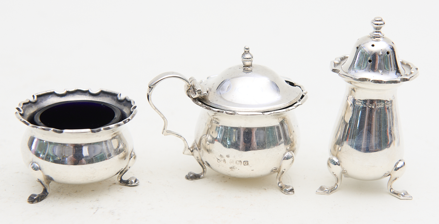 THREE STERLING SILVER CRUETS WITH GLASS LINERS - 110 GRAMS WITHOUT LINERS, LEONARD JOEL LOCAL DELIVERY SIZE: SMALL