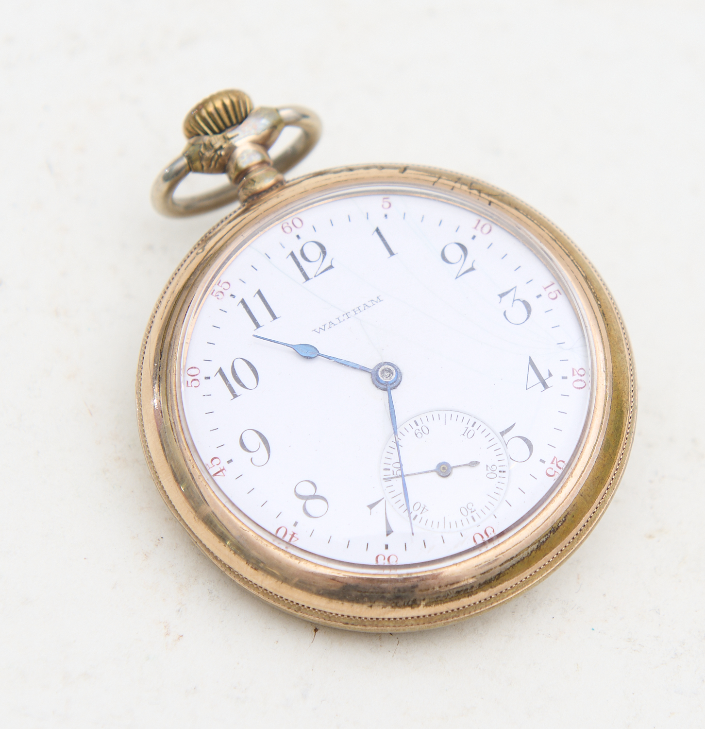 A WALTHOM CROWN WIND GOLD PLATED POCKET WATCH, LEONARD JOEL LOCAL DELIVERY SIZE: SMALL
