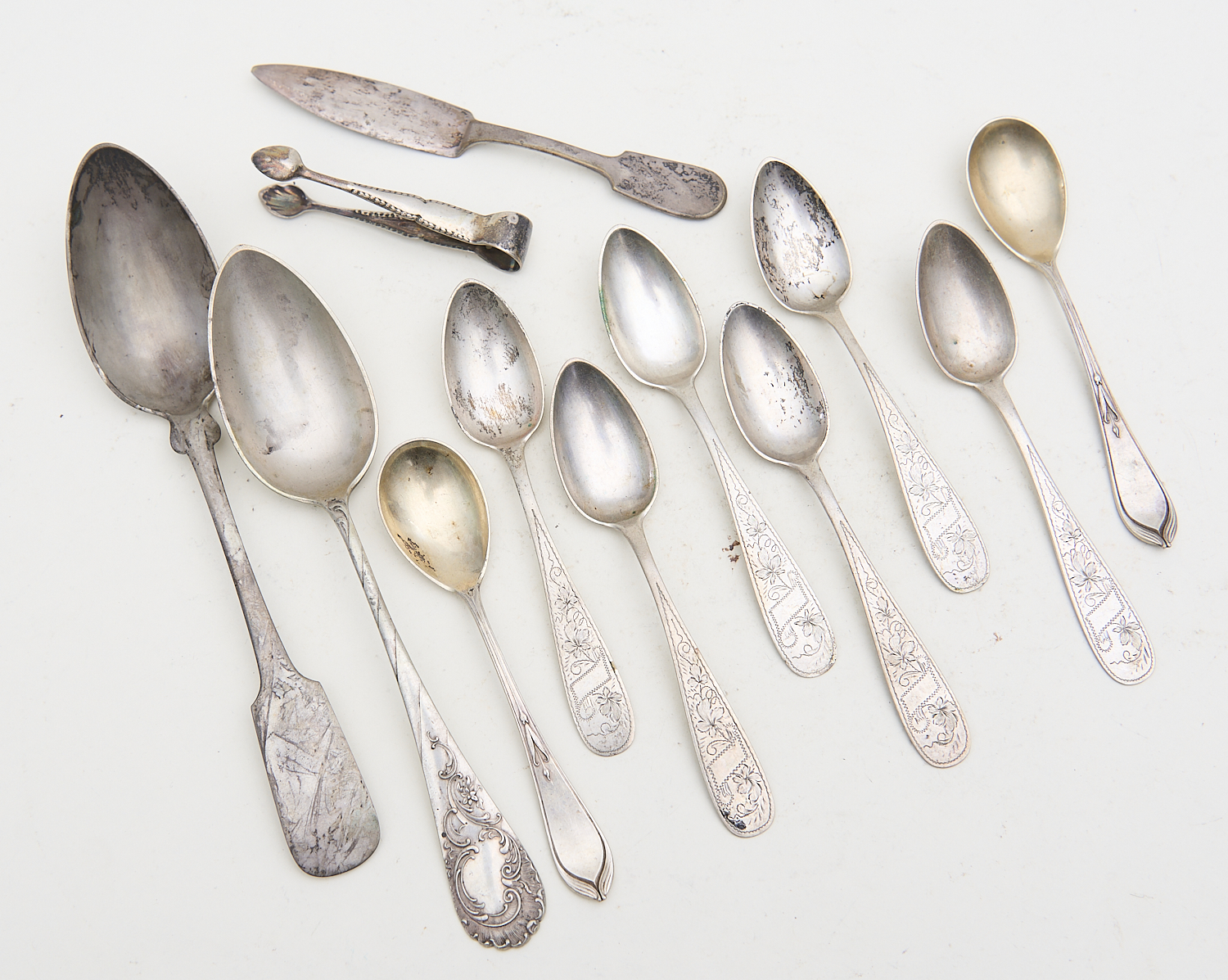 A GROUP OF ASSORTED 800 SILVER SPOONS TOGETHER WITH OTHERS 263G, LEONARD JOEL LOCAL DELIVERY SIZE: SMALL