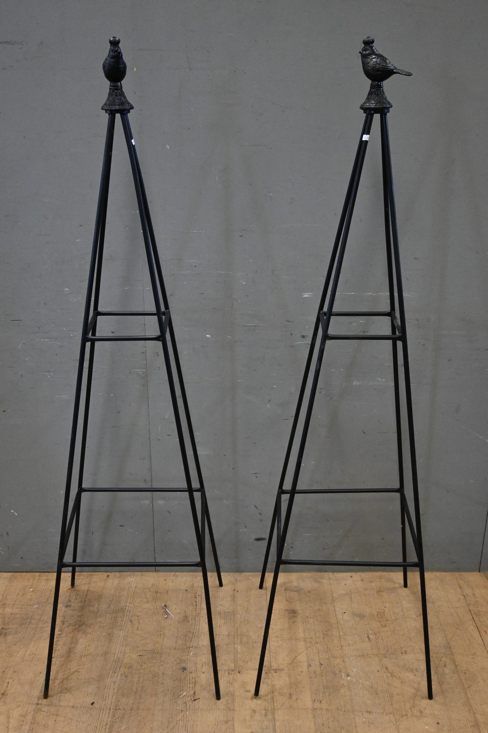 TWO METAL PLANT SUPPORTS WITH CAST IRON BIRD TOPPERS (170H CM) (LEONARD JOEL DELIVERY SIZE: LARGE)