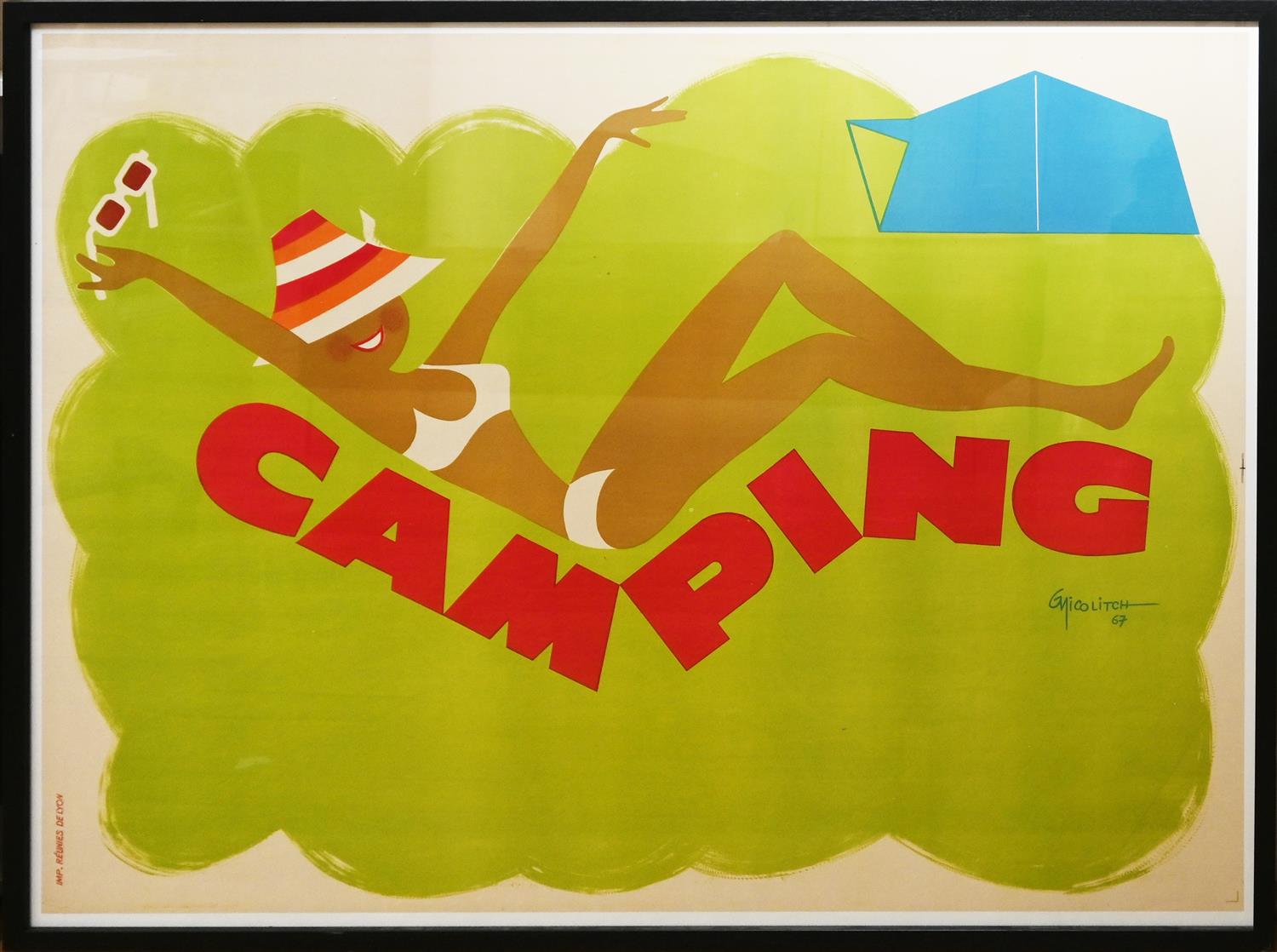G. NICOLITCH, CAMPING, ORIGINAL VINTAGE OFFSET LITHOGRAPHIC POSTER, 115 X 157CM