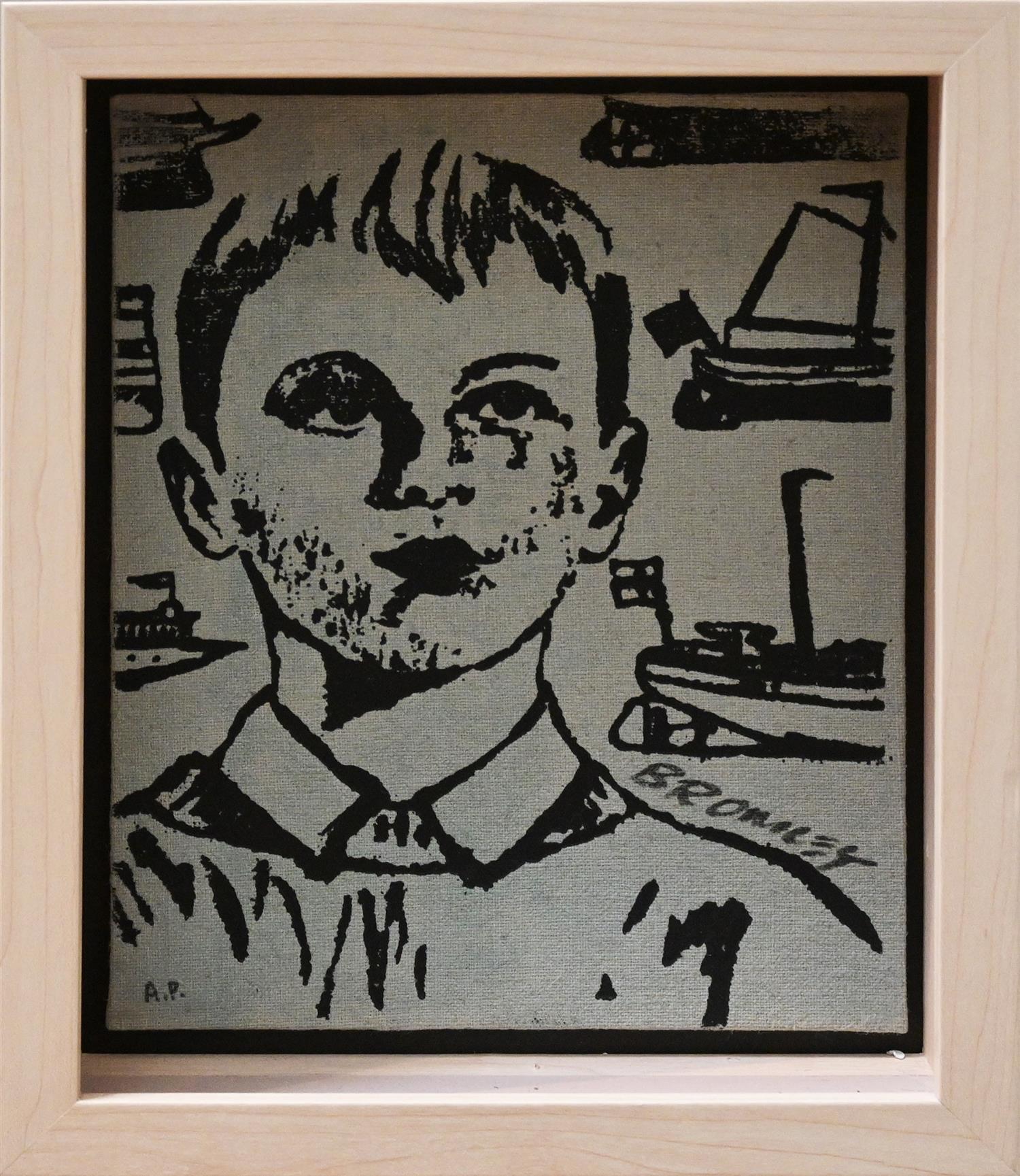 DAVID BROMLEY, BOY AND BOATS, SCREENPRINT A/P ON CANVASBOARD, 24.5 X 19.5CM, FRAMED SIZE: 28 X 23CM