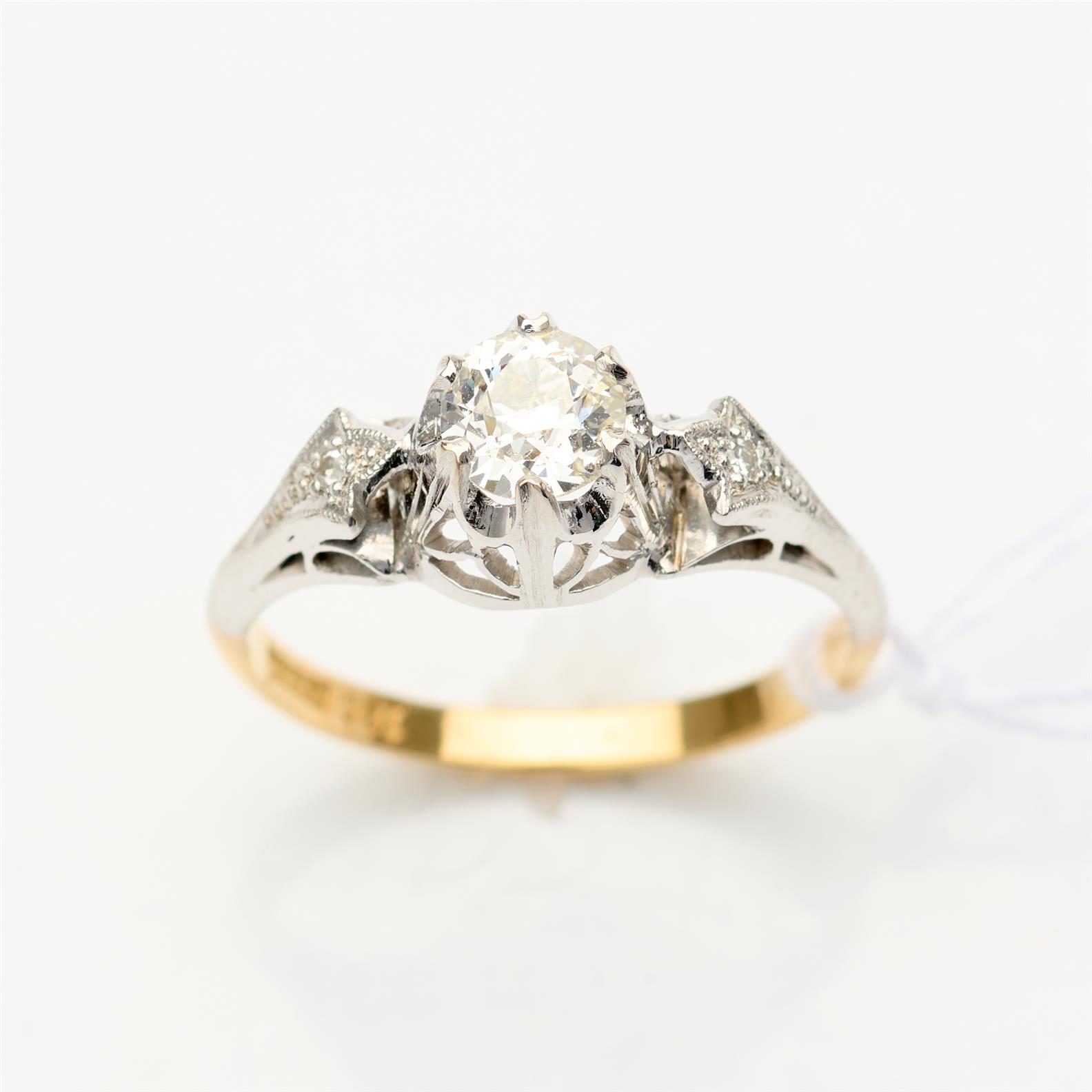 THE DIAMOND IS OF OLD BRILLIANT CUT WITH A HIGH TABLE AND OPEN CULET, ESTIMATED IN SETTING GRADING AS J-K, SI. CLAWS ALL INTACT AND IN GOOD CONDITION