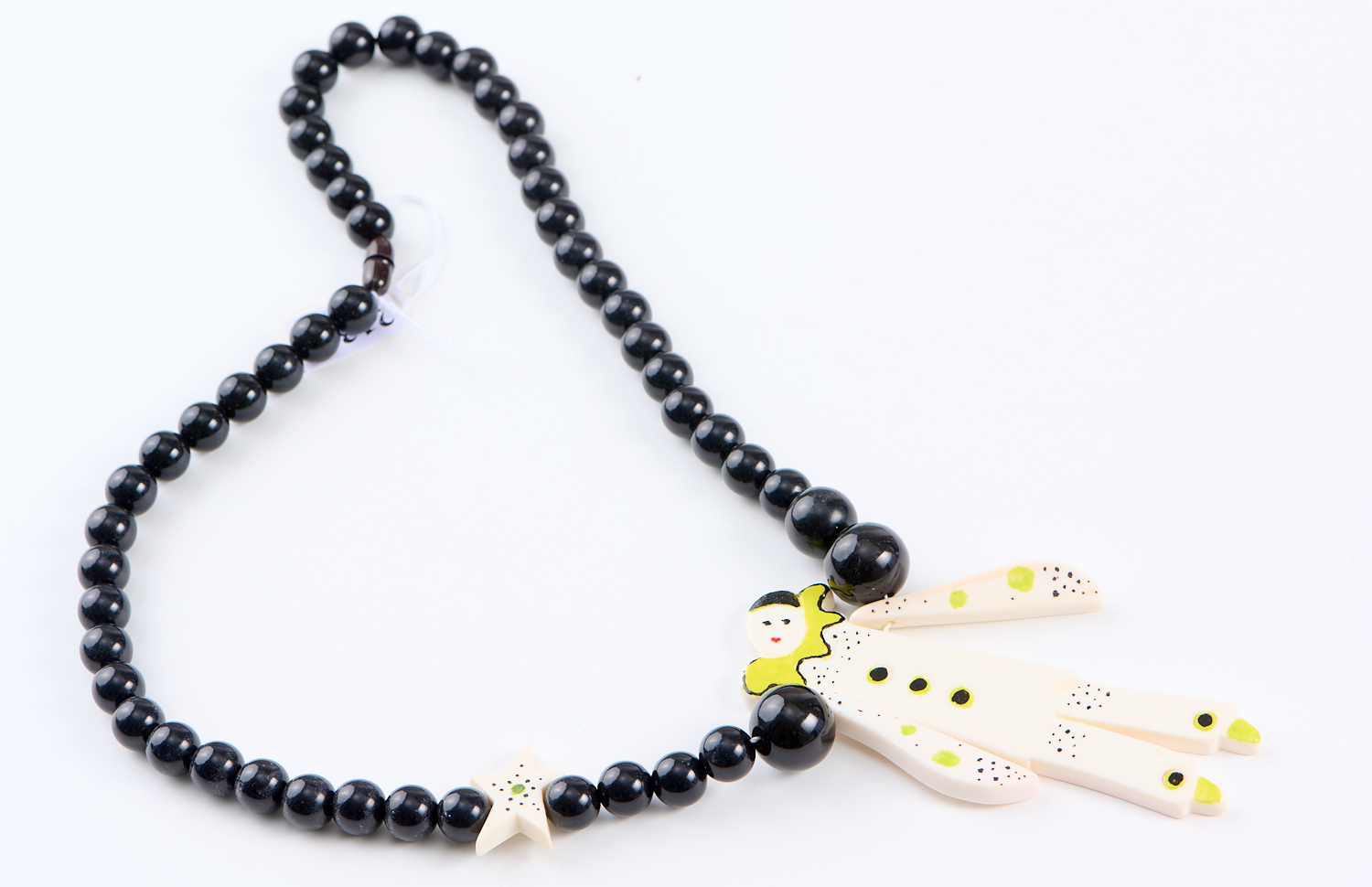 A ISADORA PARIS BLACK AND WHITE FRENCH 'PIERROT' CLOWN NECKPIECE, LENGTH APPROXIMATELY 660MM