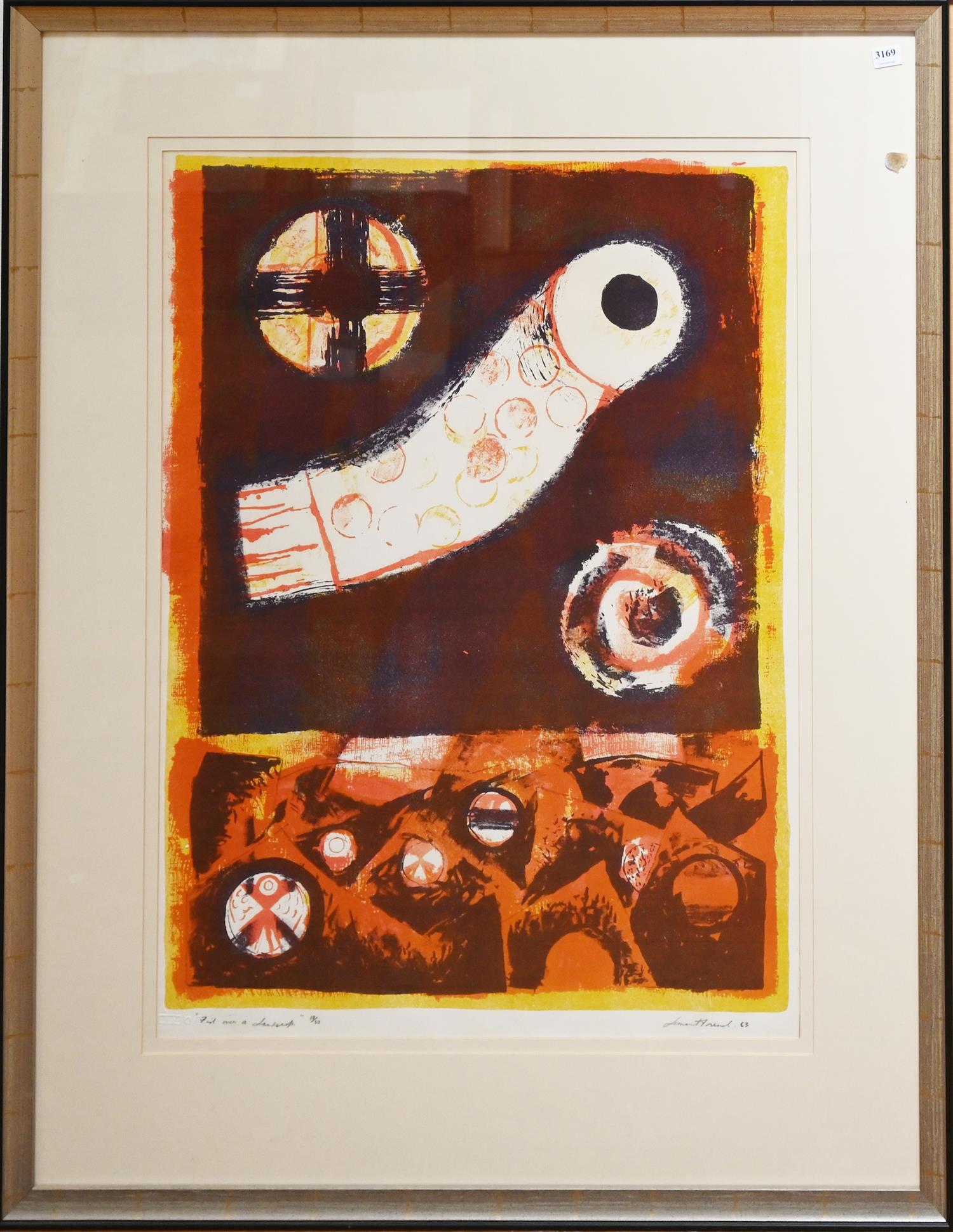 LEONARD FRENCH, FISH OVER A LANDSCAPE, LITHOGRAPH 10/50, 78 X 56CM