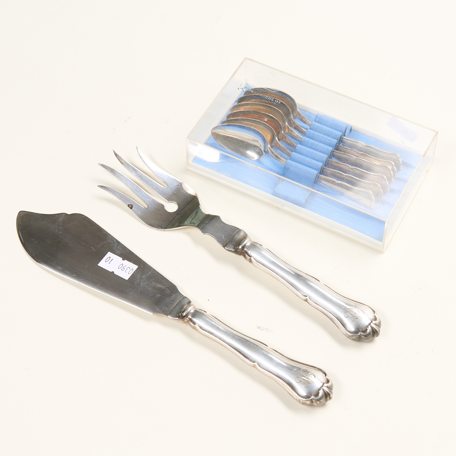 A GROUP OF FINNISH SILVER FLATWARE INCLUDING SERVERS AND SET OF COFFEE SPOONS L.23CM (SERVERS), LEONARD JOEL LOCAL DELIVERY SIZE: SMALL