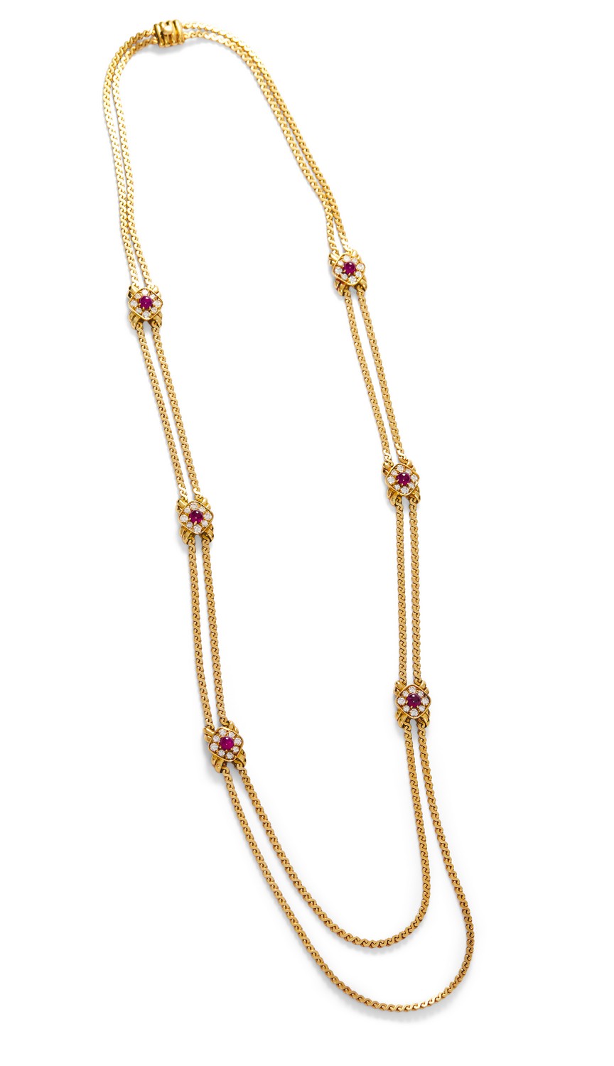 VAN CLEEF & ARPELS 18CT GOLD, RUBY AND DIAMOND LONGCHAIN NECKLACE