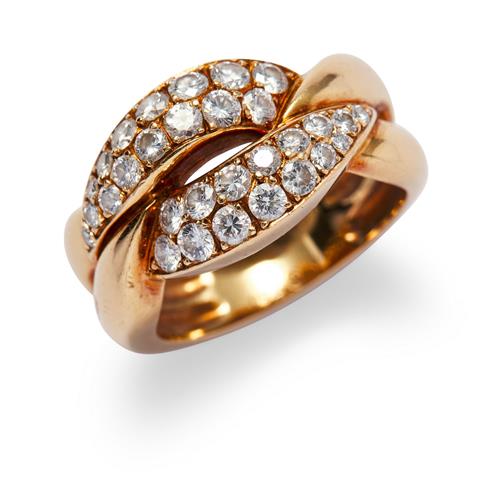 Modelled as two interlocking half round bands pavé-set to the top with brilliant-cut diamonds, the diamonds together weighing approximately 1.00 carat, mounted in 18ct gold, size L, signed VCA for Van Cleef & Arpels, numbered 5293 A1.