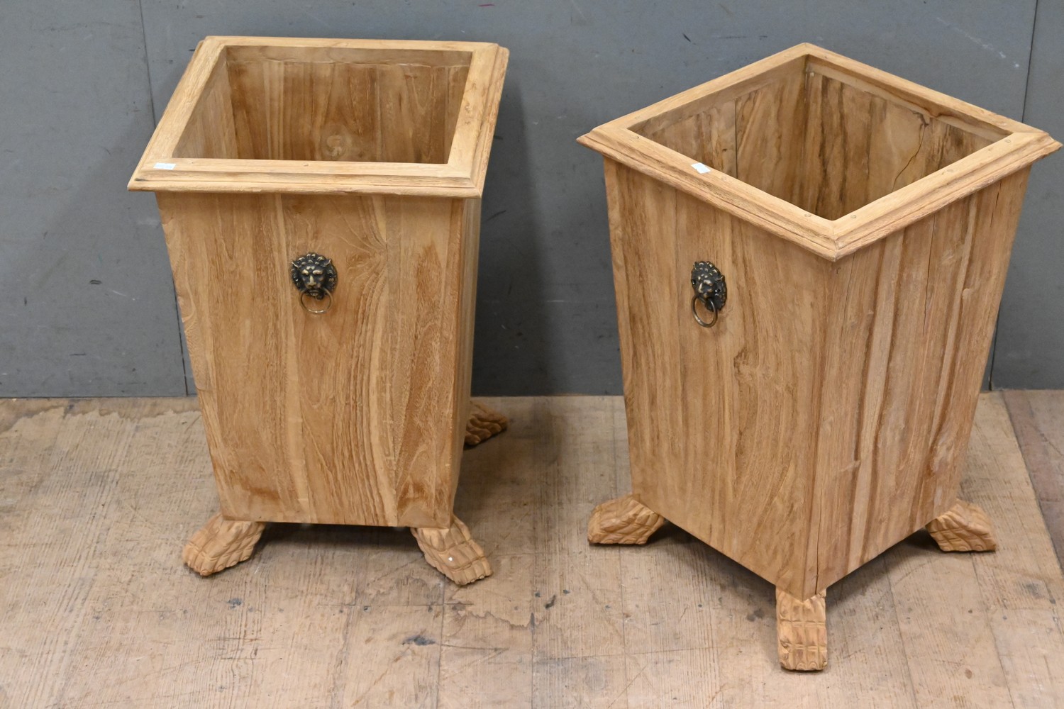 A PAIR OF TEAK PLANTERS (55H X 38W X 38D CM) (LEONARD JOEL DELIVERY SIZE: LARGE)