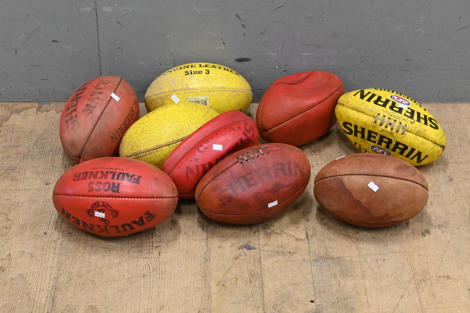 A COLLECTION OF VINTAGE LEATHER FOOTBALLS (LEONARD JOEL DELIVERY SIZE: MEDIUM)