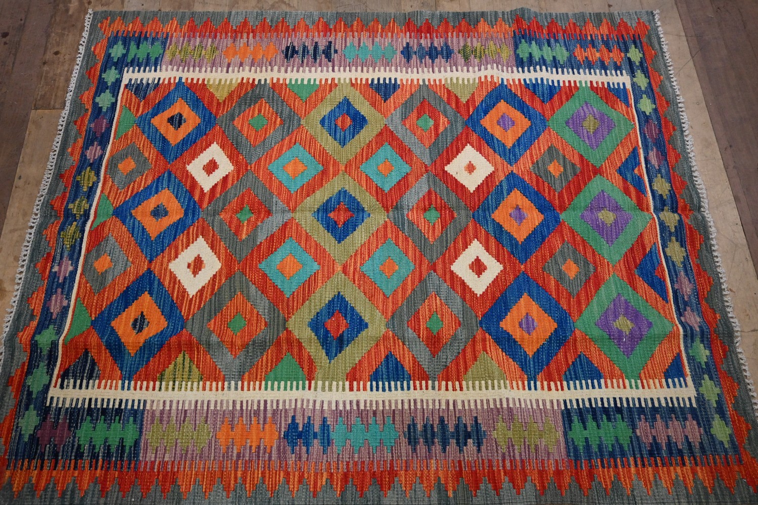 AN AFGHAN KAZAK KILIM HAND SPUN WOOL WITH VEGETABLE DYES AND HAND WOVEN (178 X 140 CM) (LEONARD JOEL DELIVERY SIZE: LARGE)