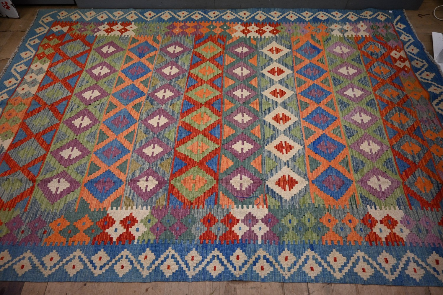 AN AFGHAN KAZAK KILIM HAND SPUN WOOL WITH VEGETABLE DYES AND HAND WOVEN (310 X 216 CM) (LEONARD JOEL DELIVERY SIZE: LARGE)