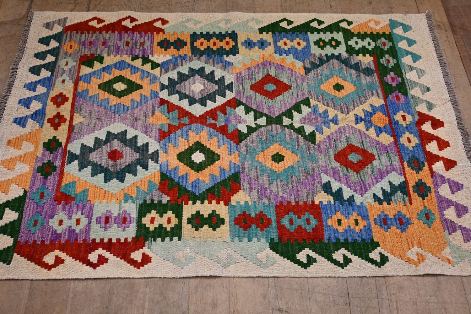 AN AFGHAN KAZAK KILIM HAND SPUN WOOL WITH VEGETABLE DYES AND HAND WOVEN (156 X 106 CM) (LEONARD JOEL DELIVERY SIZE: LARGE)