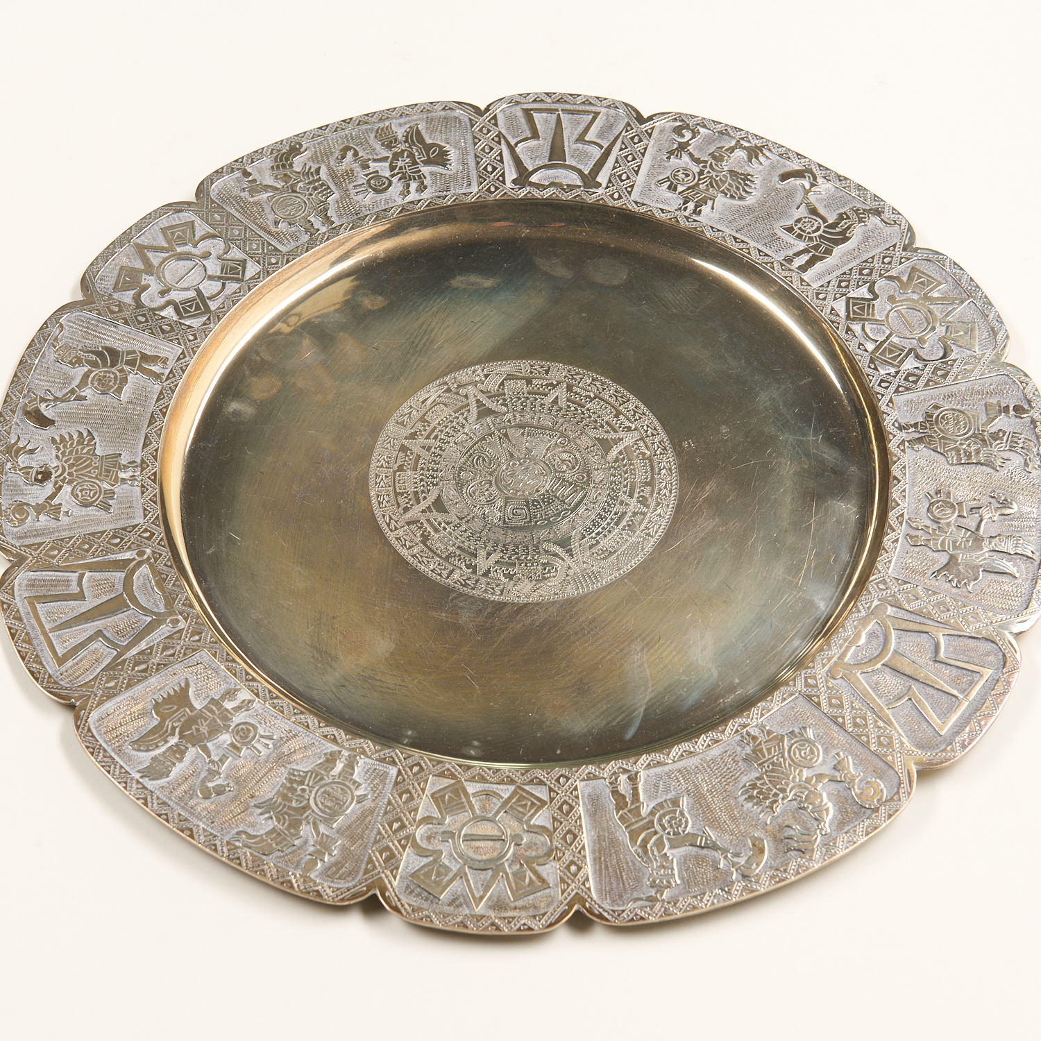 A MEXICAN 925 SILVER PLATTER WITH EMBOSSED DECORATION 700 GRAMS DIA.31CM, LEONARD JOEL LOCAL DELIVERY SIZE: SMALL