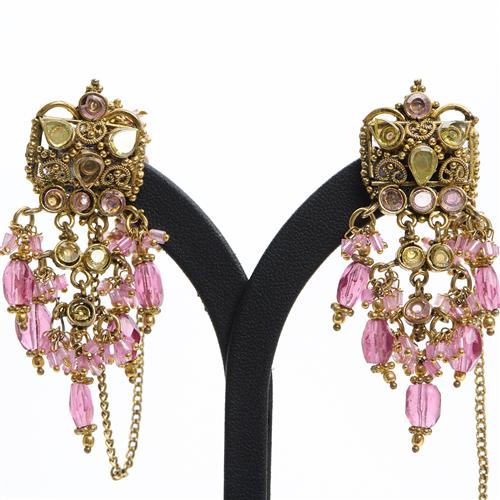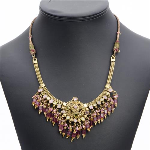 AN INDAN COSTUME NECKLACE IN GOLD PLATE, ALONG WITH CONFORMING DROP EARRINGS, A/F