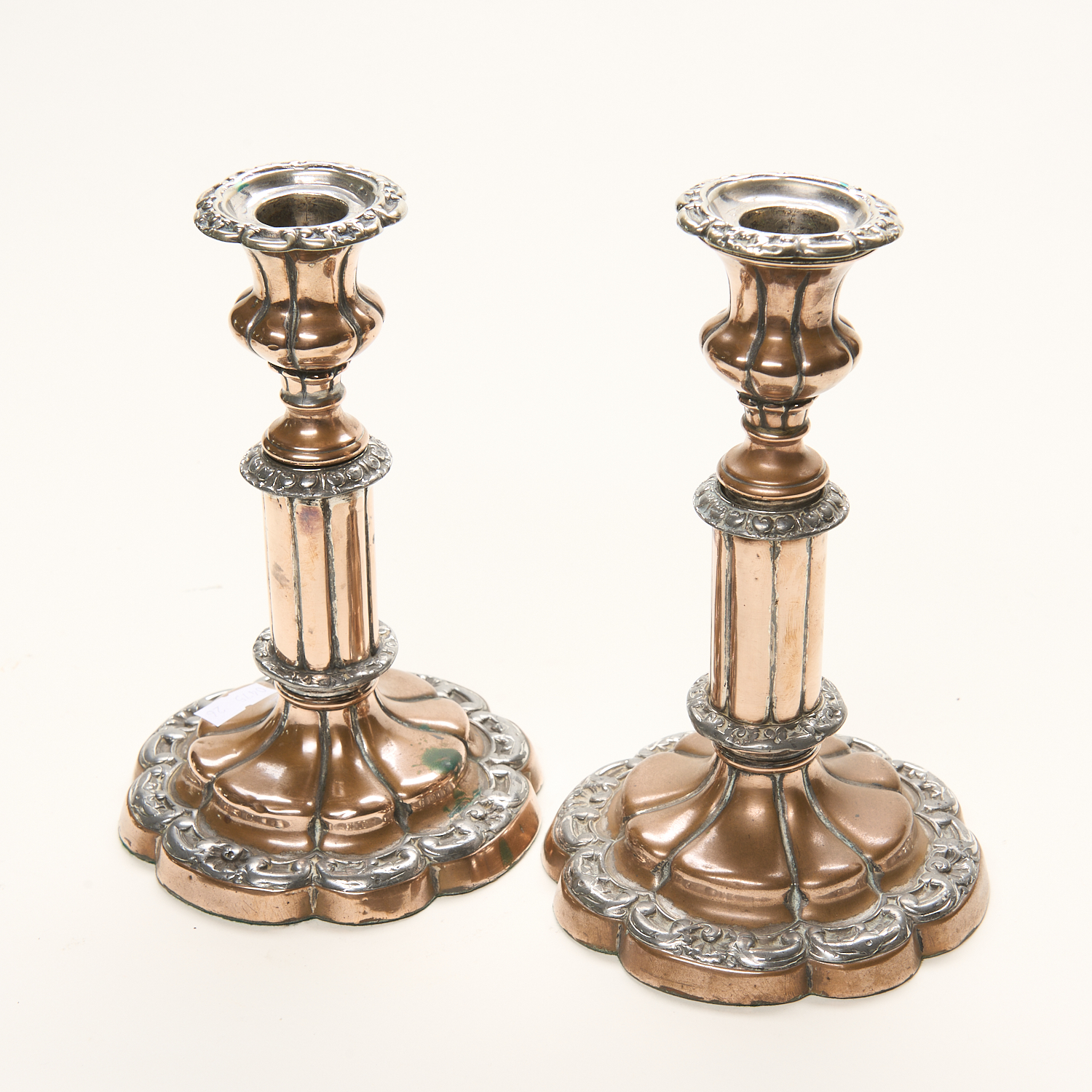 A PAIR OF 19TH CENTURY SHEFFIELD SILVER PLATE TELESCOPIC CANDLESTICKS (WORN PLATING) H.19CM, LEONARD JOEL LOCAL DELIVERY SIZE: SMALL