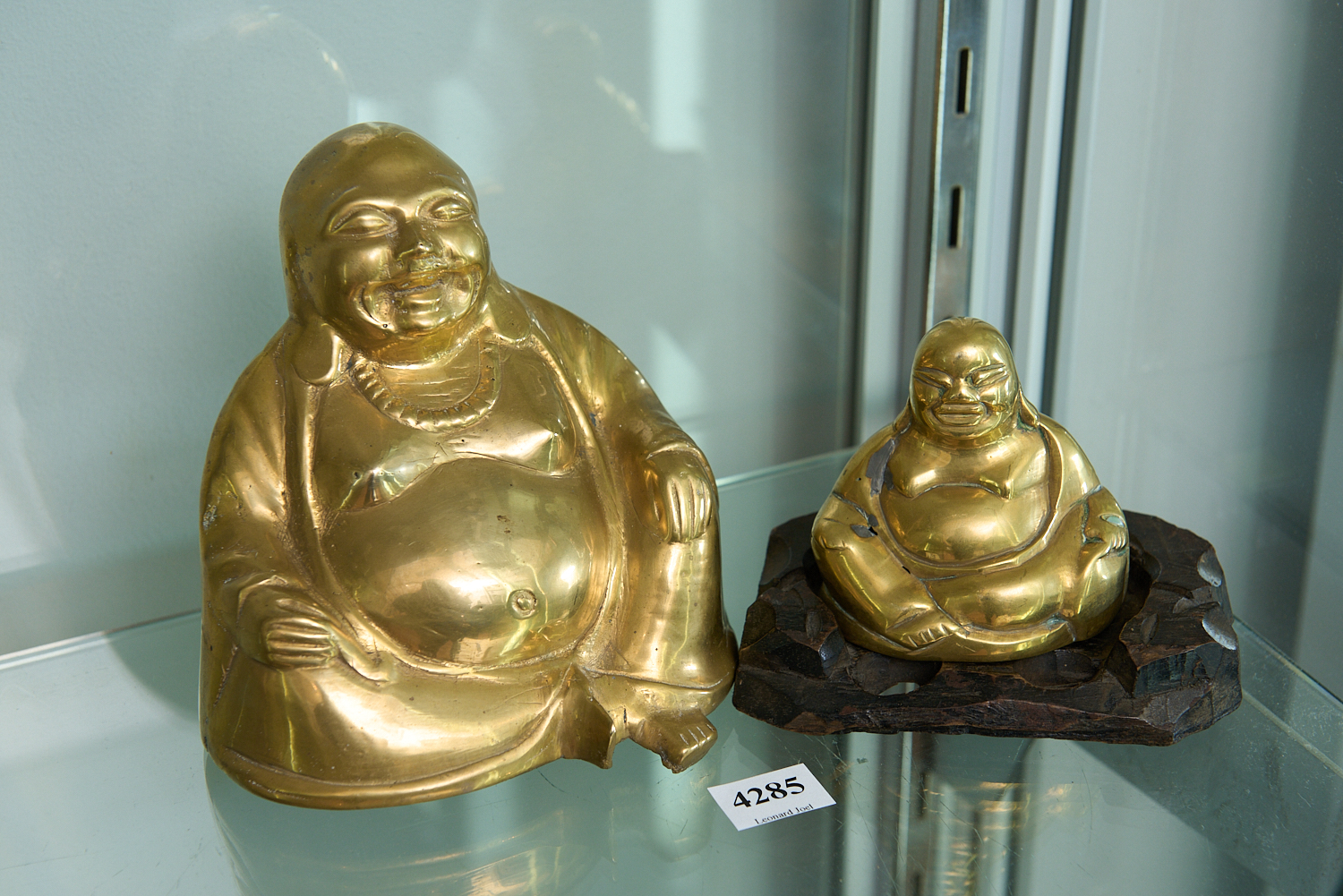 TWO CHINESE BRASS BUDDHAS, H.13CM, LEONARD JOEL LOCAL DELIVERY SIZE: SMALL