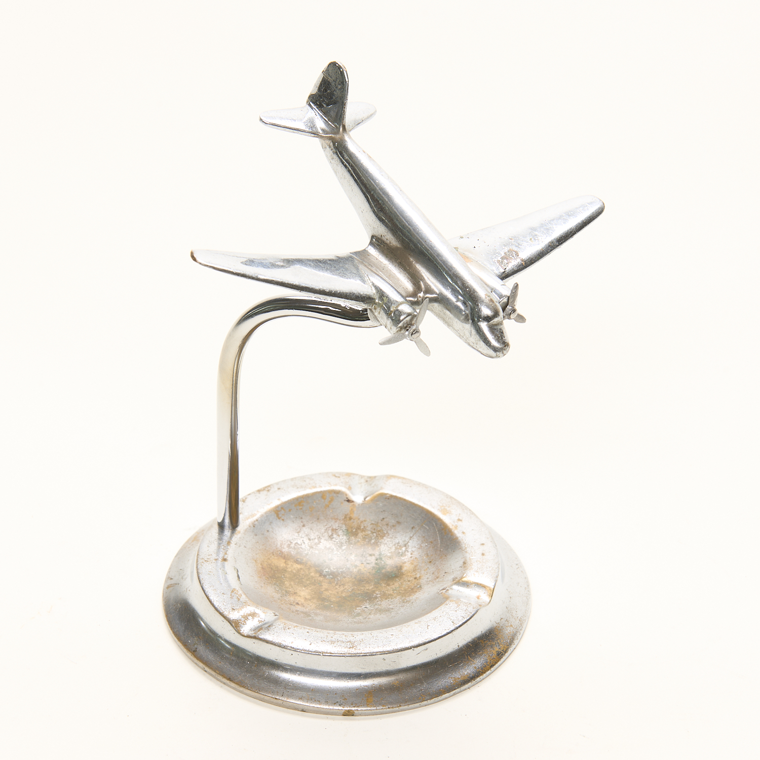 A CHROMED AEROPLANE ON STAND H.18CM, LEONARD JOEL LOCAL DELIVERY SIZE: SMALL