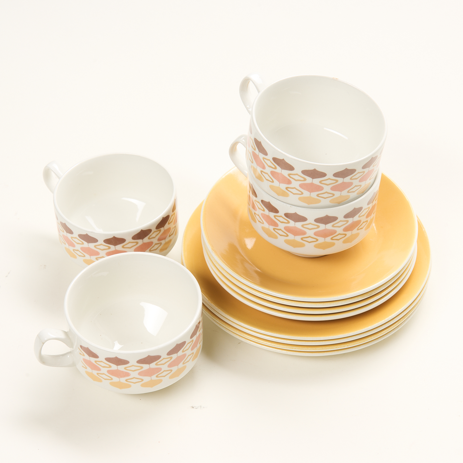A SET OF FOUR RETRO SPANISH CROWN IRONSTONE CUPS SAUCERS AND PLATES, LEONARD JOEL LOCAL DELIVERY SIZE: SMALL