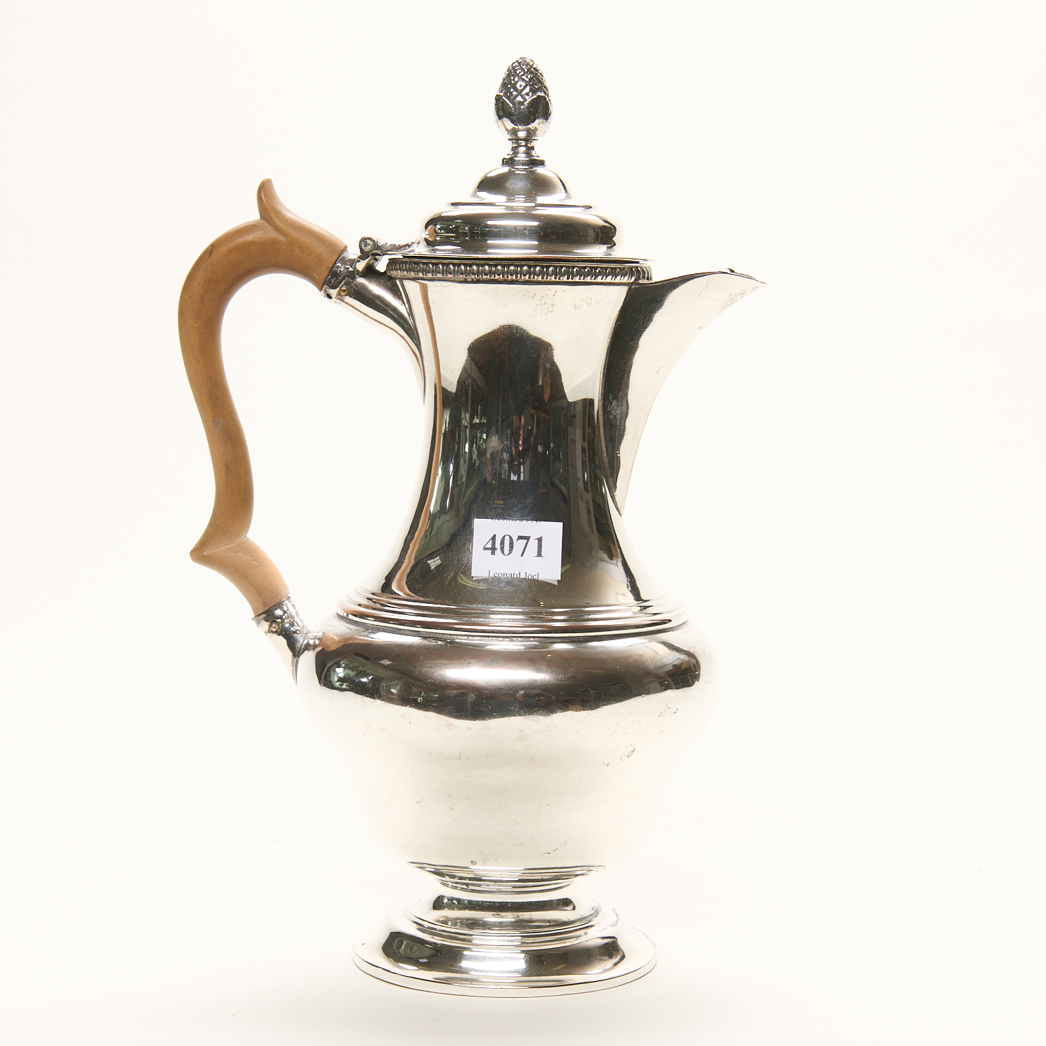 A SILVER PLATED COFFEE POT WITH FRUITWOOD HANDLE, LEONARD JOEL LOCAL DELIVERY SIZE: SMALL