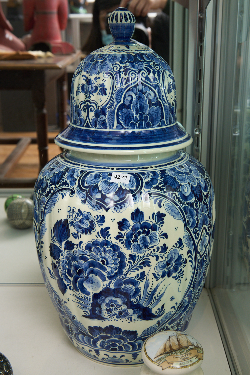 A DELFTS BLAUER RAM LIDDED URN H.56CM, LEONARD JOEL LOCAL DELIVERY SIZE: MEDIUM