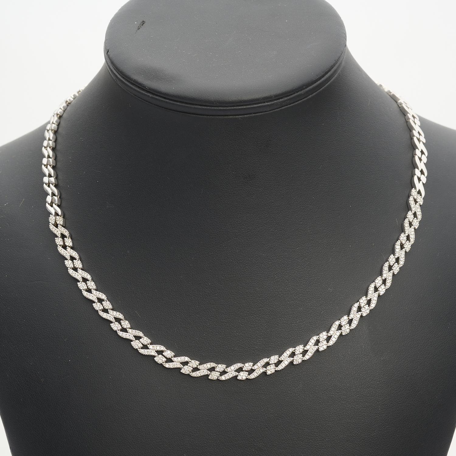 A DIAMOND SET NECKLACE IN 18CT WHITE GOLD, DIAMONDS TOTALLING 1.64CTS, LENGTH APPROXIMATLEY 460MM, WEIGHT 36.87 GRAMS