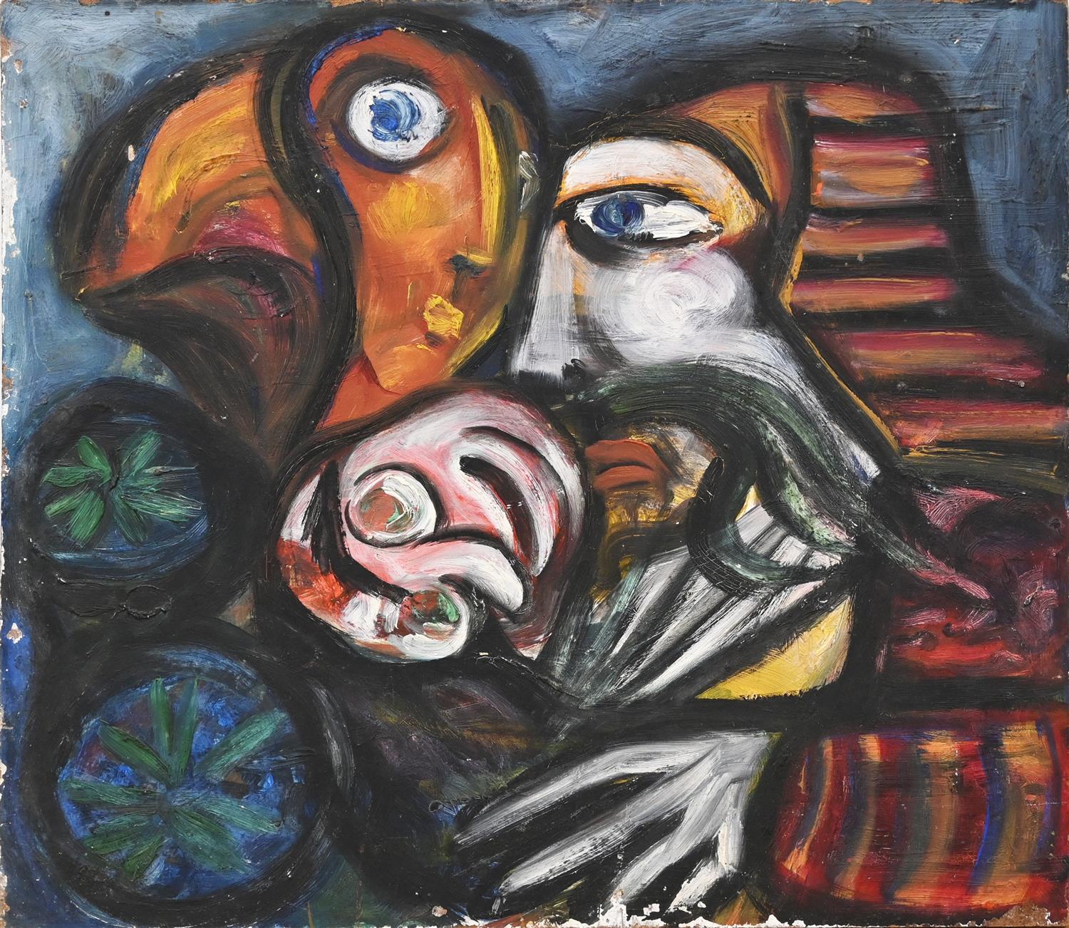 ELIZABETH VASSILIEF, FACES, OIL ON BOARD, 38 X 44CM