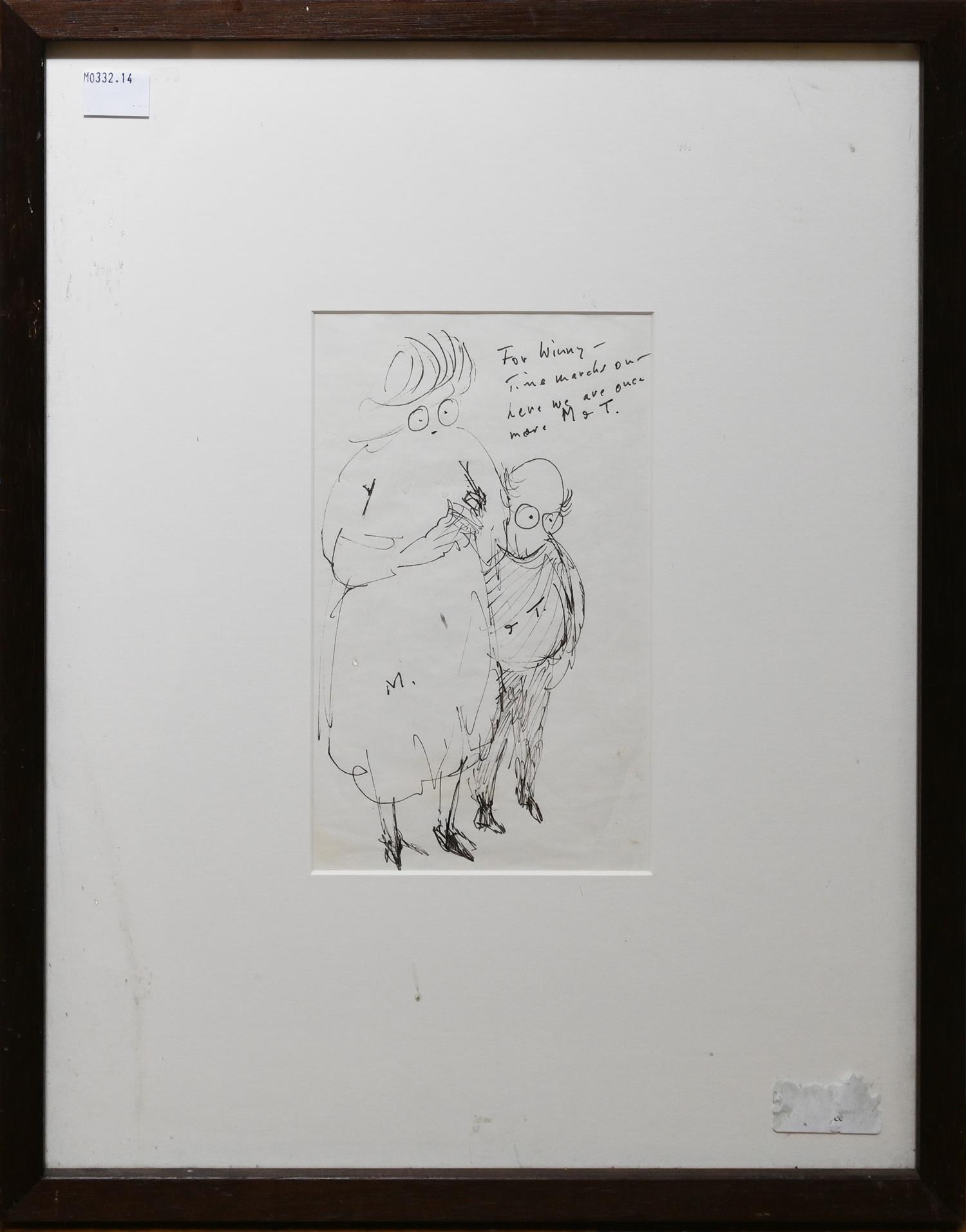 ATTRIBUTED RUSSELL DRYSDALE, TIME MARCHES ON, INK ON PAPER, 19 X 12CM