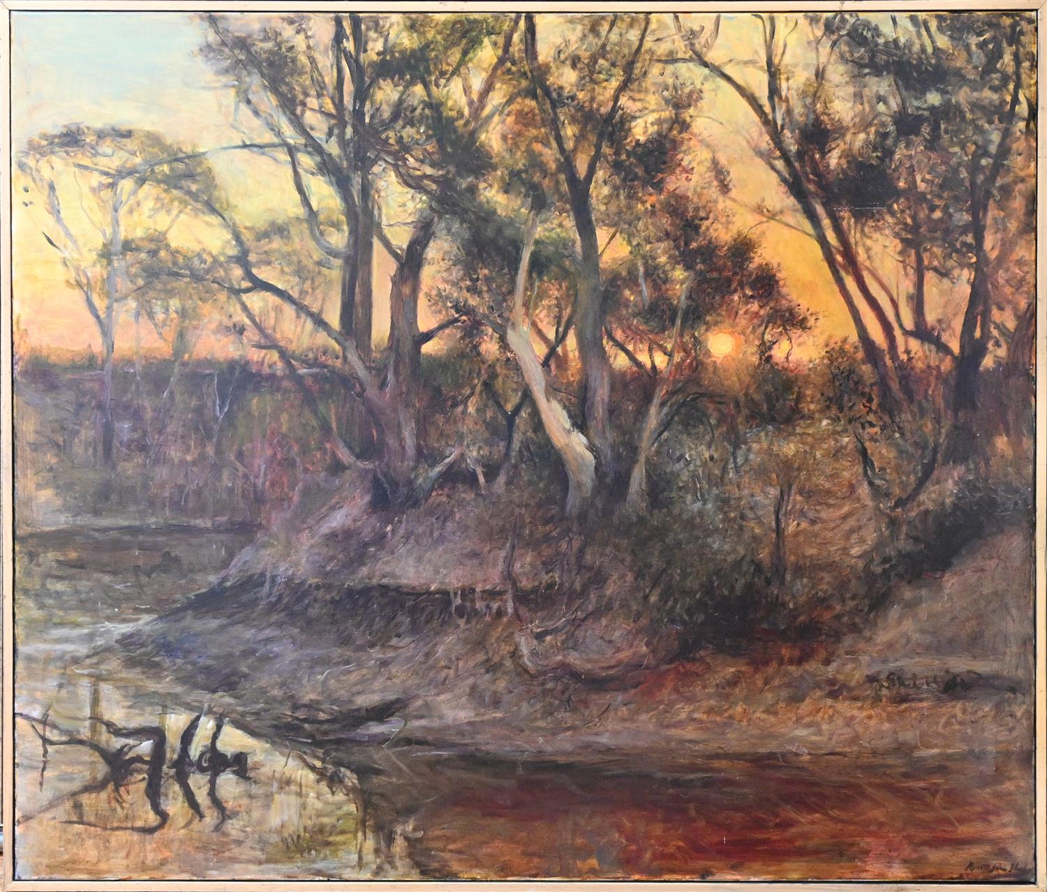 HERMAN PEKEL, PUNT ROAD 2014, OIL BOARD, 59 X 120CM CONDITION: OVERALL GOOD, STRETCHED CANVAS, FRAMED