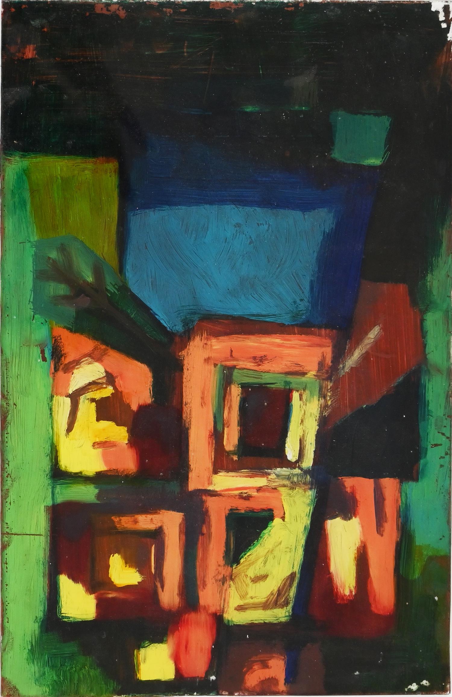 BILL COLEMAN, ABSTRACT, OIL ON GLASS, 28.5 X 18.5CM