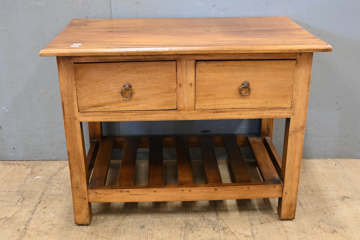 A TIMBER TWO DRAWER SIDE TABLE ( 61H X 81W X 44D CM) (LEONARD JOEL DELIVERY SIZE: LARGE)