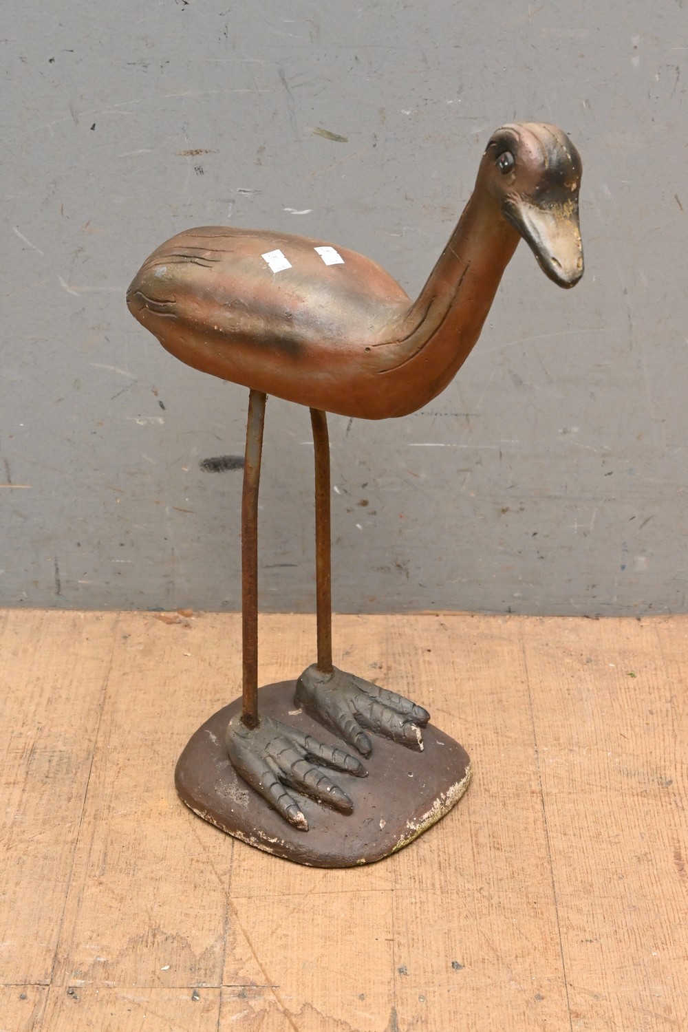 A SMALL CONCRETE GARDEN EMU (A/F) (56H CM) (LEONARD JOEL DELIVERY SIZE: MEDIUM)