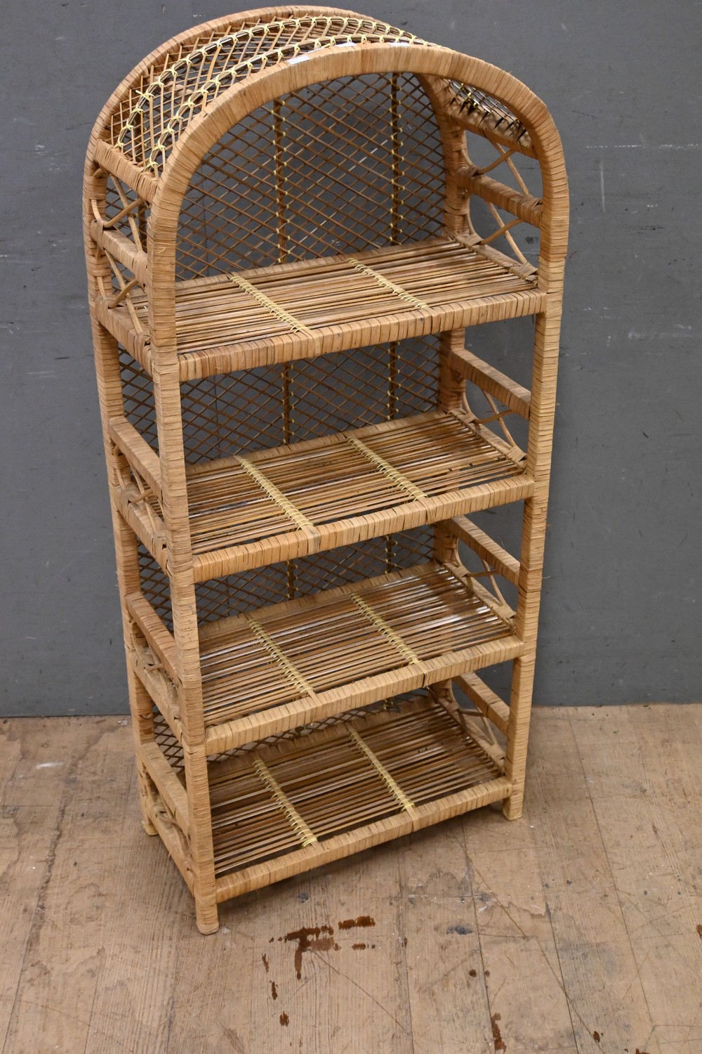 A CANE FOUR TIER SHELF (H120 X W54 X D27 CM) (LEONARD JOEL DELIVERY SIZE: LARGE)