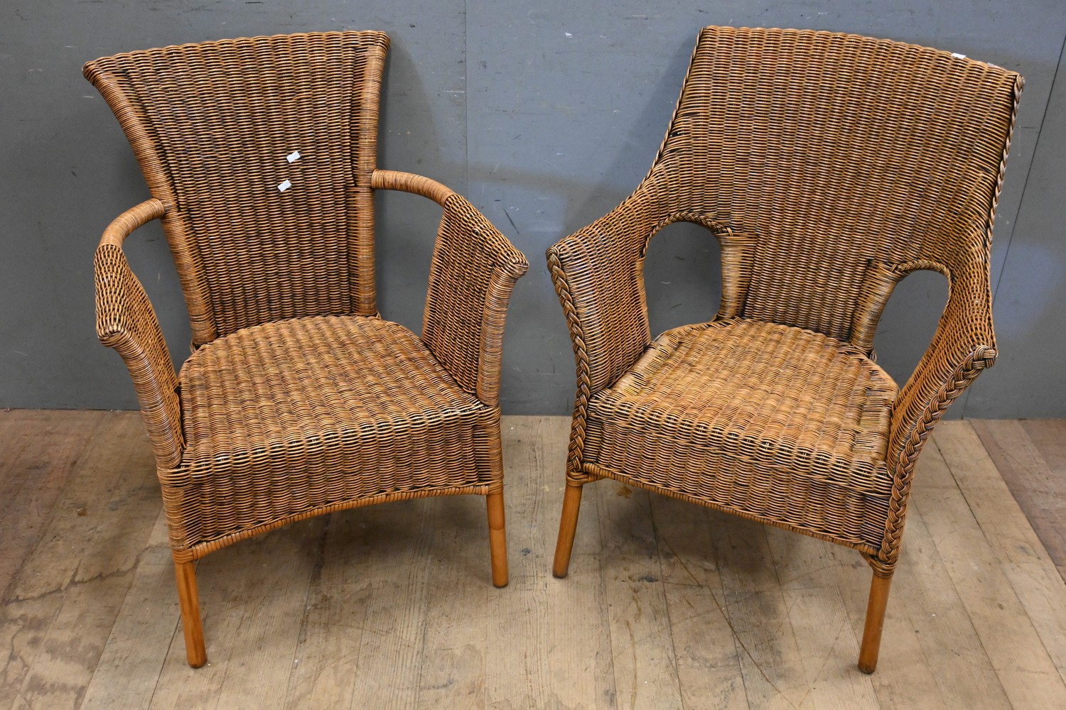 TWO CANE ARM CHAIRS (88H CM) (LEONARD JOEL DELIVERY SIZE: LARGE)