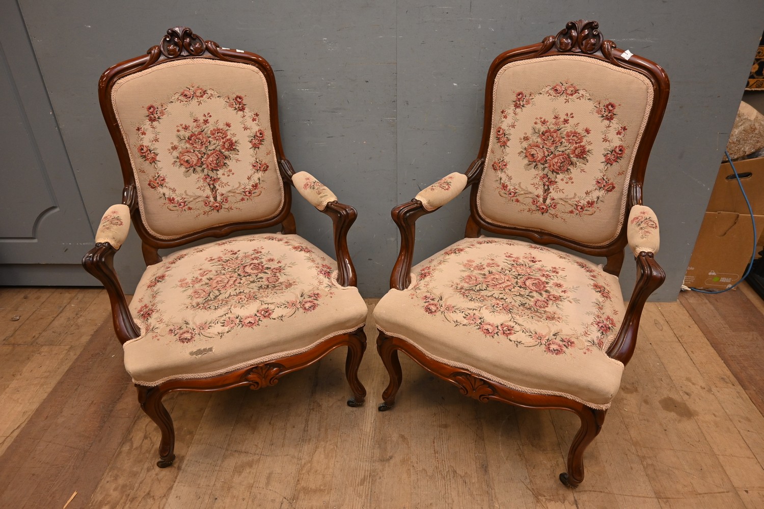 A PAIR OF LOUIS PHILLIPE STYLE MAHOGONY ARMCHAIRS (A/F) (H106 X W72 X D64 CM) (LEONARD JOEL DELIVERY SIZE: LARGE)