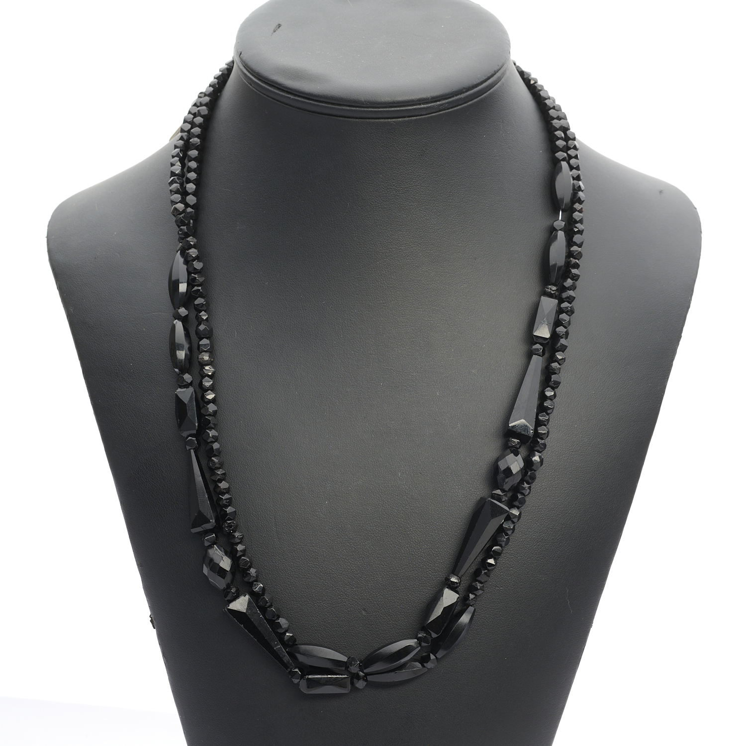 A LONG STRAND OF FRENCH JET BEADS, LENGTH 1210MM