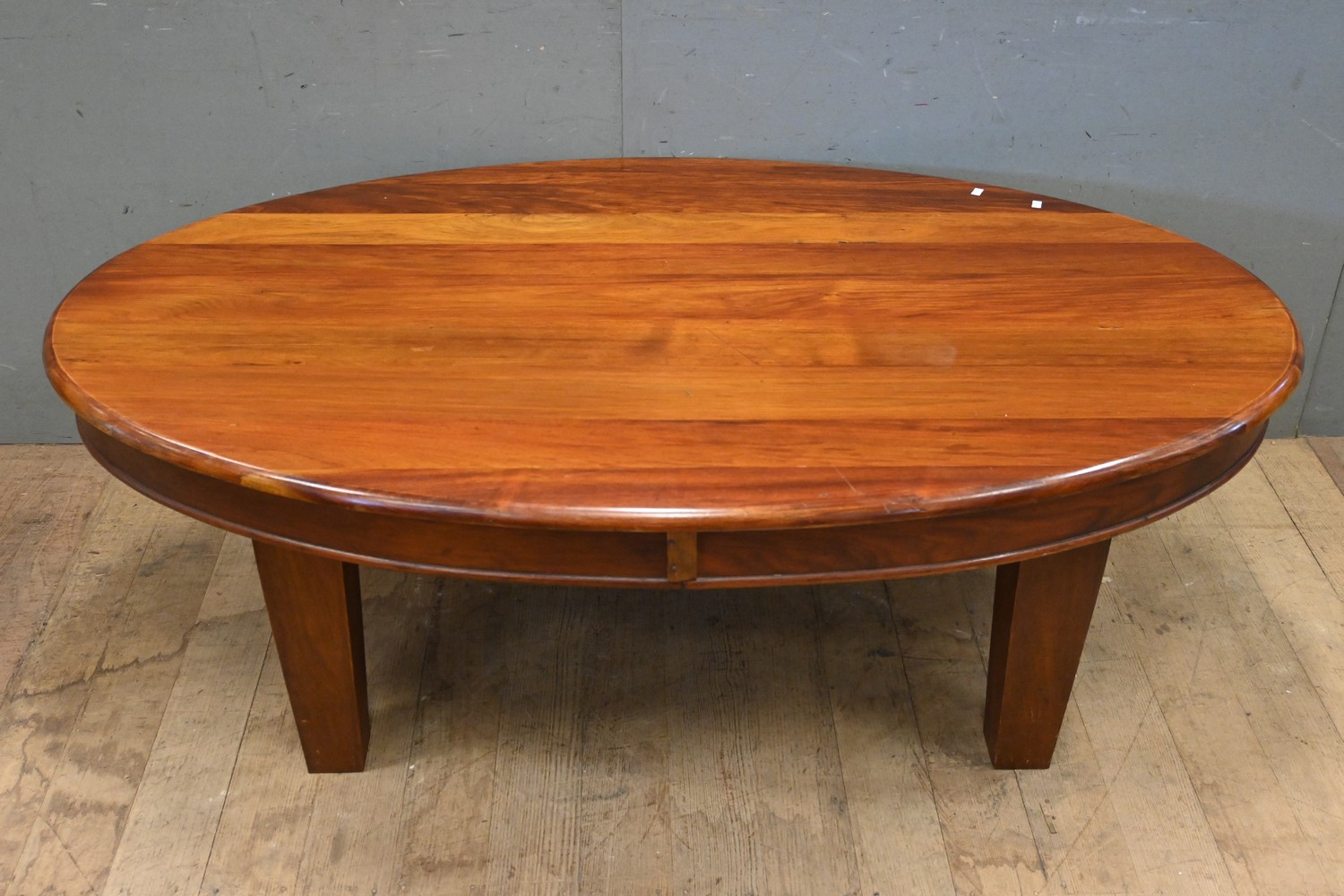 AN OVAL BLACKWOOD COFFEE TABLE (50H X 150W X 90D CM) (PLEASE NOTE THIS HEAVY ITEM MUST BE REMOVED BY CARRIERS AT THE CUSTOMER'S EXPENSE. LEONARD JOEL STAFF CANNOT ASSIST CARRYING THIS ITEM) (X-LARGE ITEM)