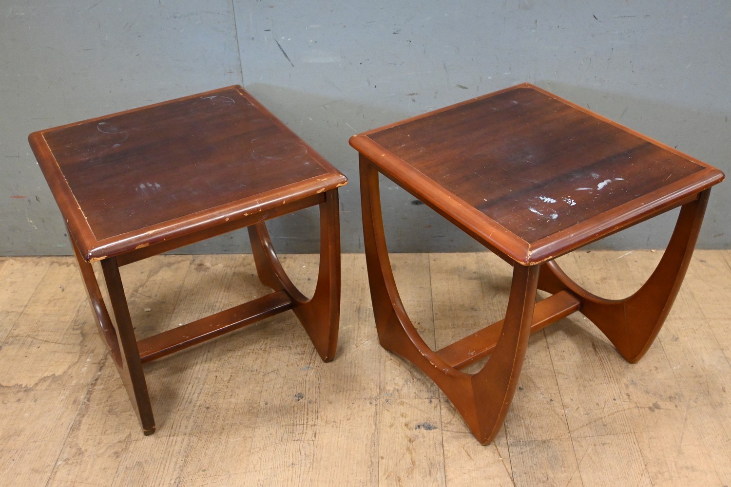 A PAIR OF KALMAR MID CENTURY SIDE TABLES, (A/F) (43H X 42W X 46D CM) (LEONARD JOEL DELIVERY SIZE: MEDIUM)