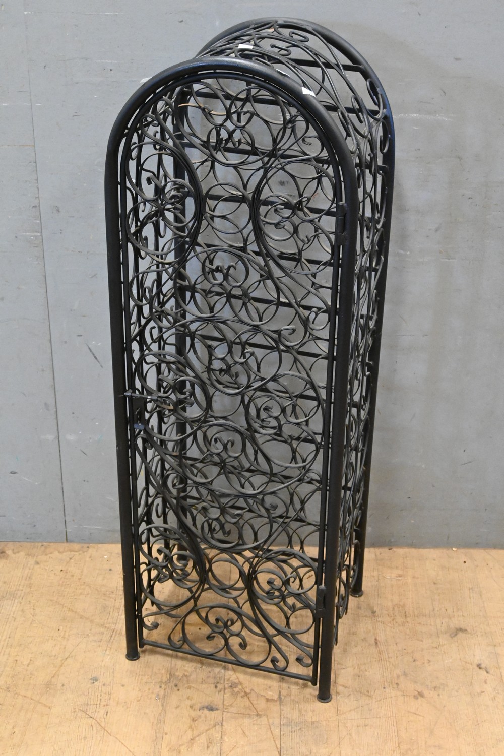 A BLACK WROUGHT IRON WINE RACK (119H X 72W X 36D CM) (LEONARD JOEL DELIVERY SIZE: LARGE)