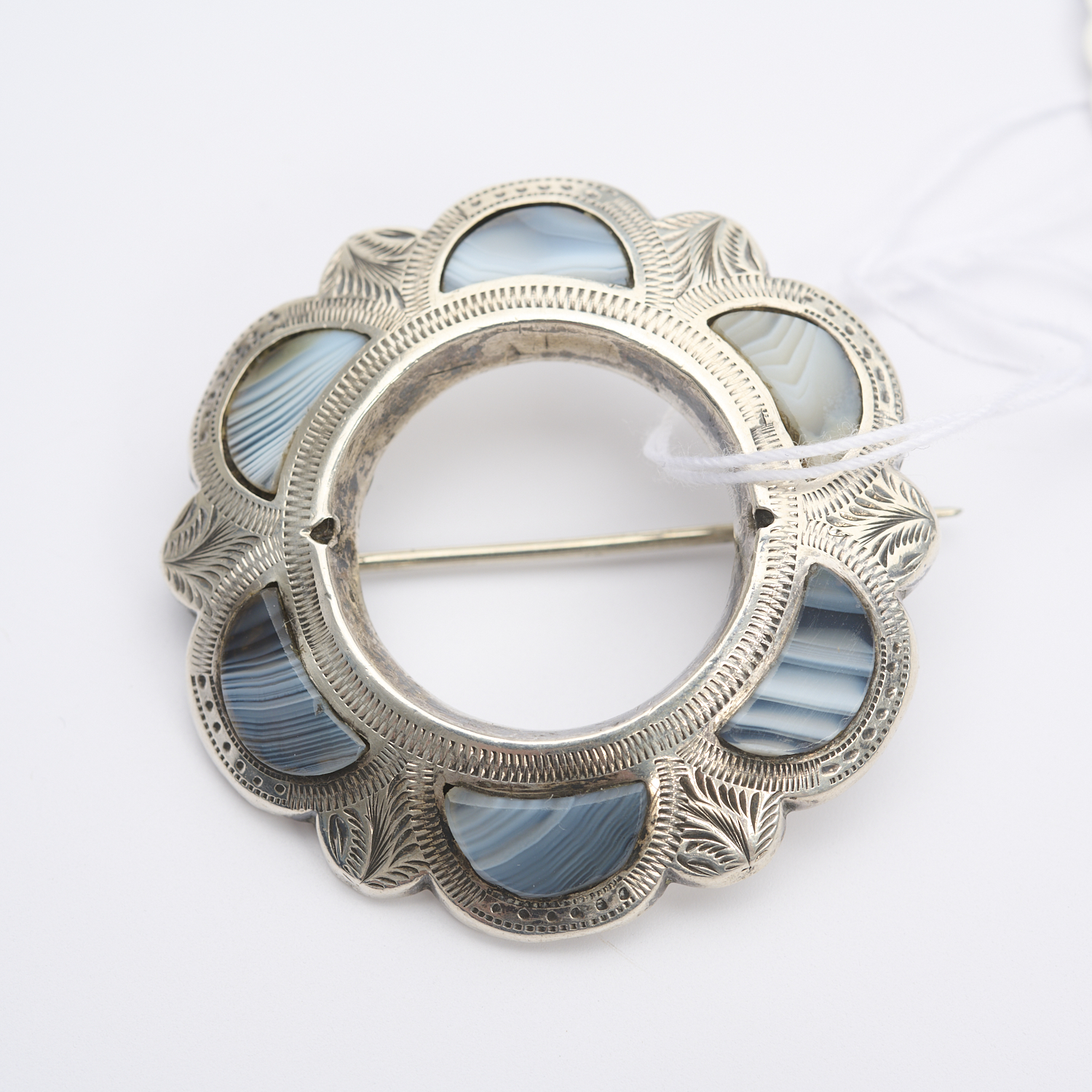A SPECIMEN AGATE SET BROOCH IN CONTINENTAL SILVER, DIAMETER APPROXIMATELY 40MM
