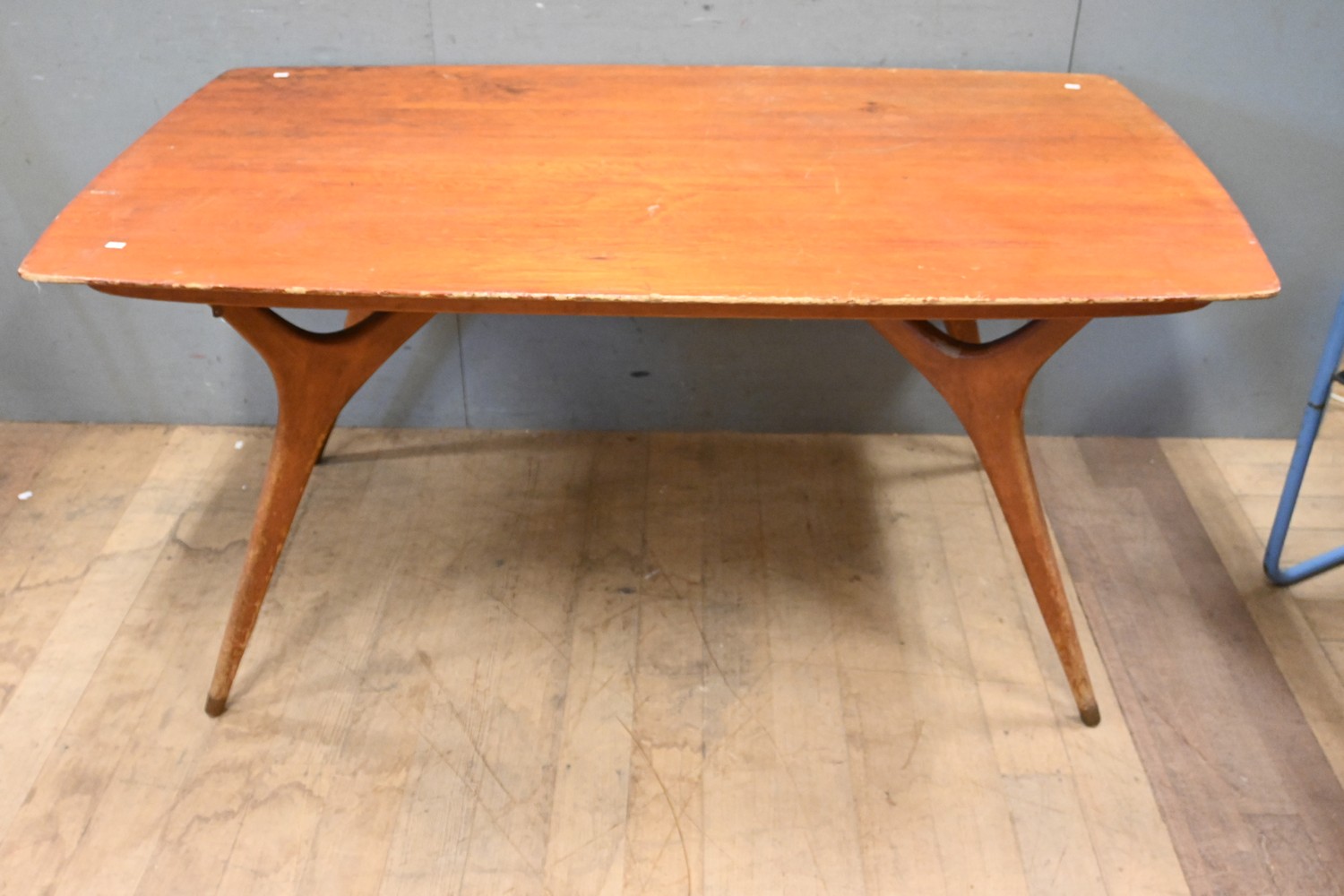 A RARE HUNT, SON & OLIVER MID CENTURY AUSTRALIAN DINING TABLE (A/F) (H76 X W157 X D93 CM) (PLEASE NOTE THIS HEAVY ITEM MUST BE REMOVED BY CARRIERS AT THE CUSTOMER'S EXPENSE. LEONARD JOEL STAFF CANNOT ASSIST CARRYING THIS ITEM) (X-LARGE ITEM)